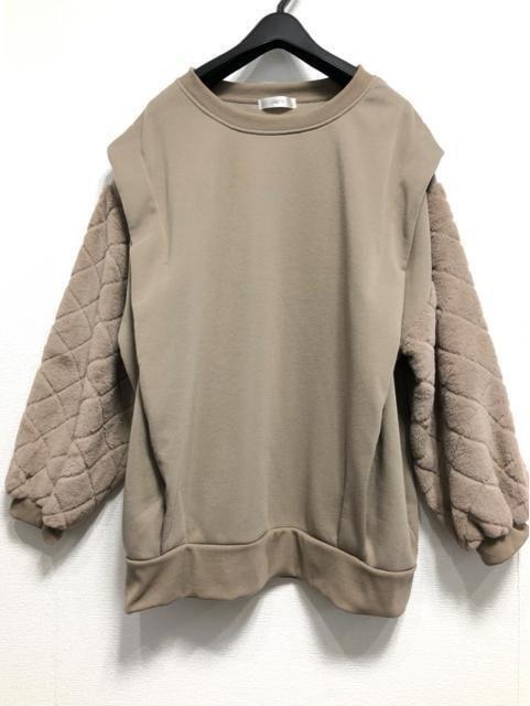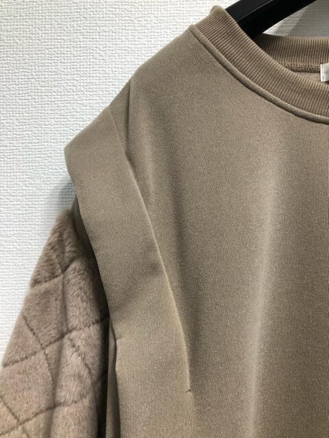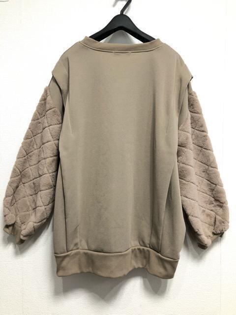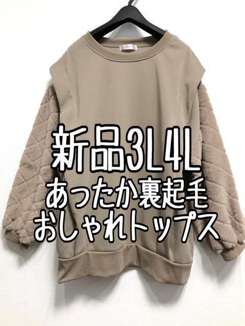 新品☆3L4L♪茶系♪裏起毛あたたかトップス♪異素材おしゃれ☆z108