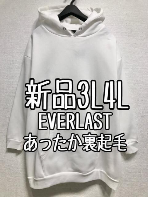 新品☆3L4L白系♪EVERLAST♪あったか裏起毛チュニックパーカー☆z506