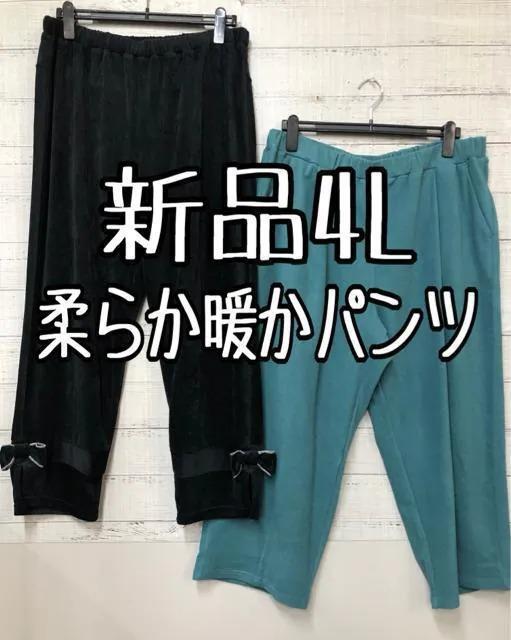 新品☆4L黒系グリーン系♪暖か柔らかパンツを2枚セットで♪リボン可愛い☆t124