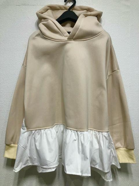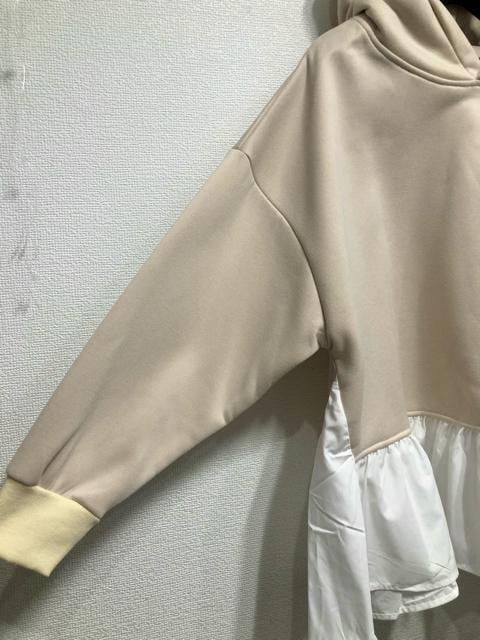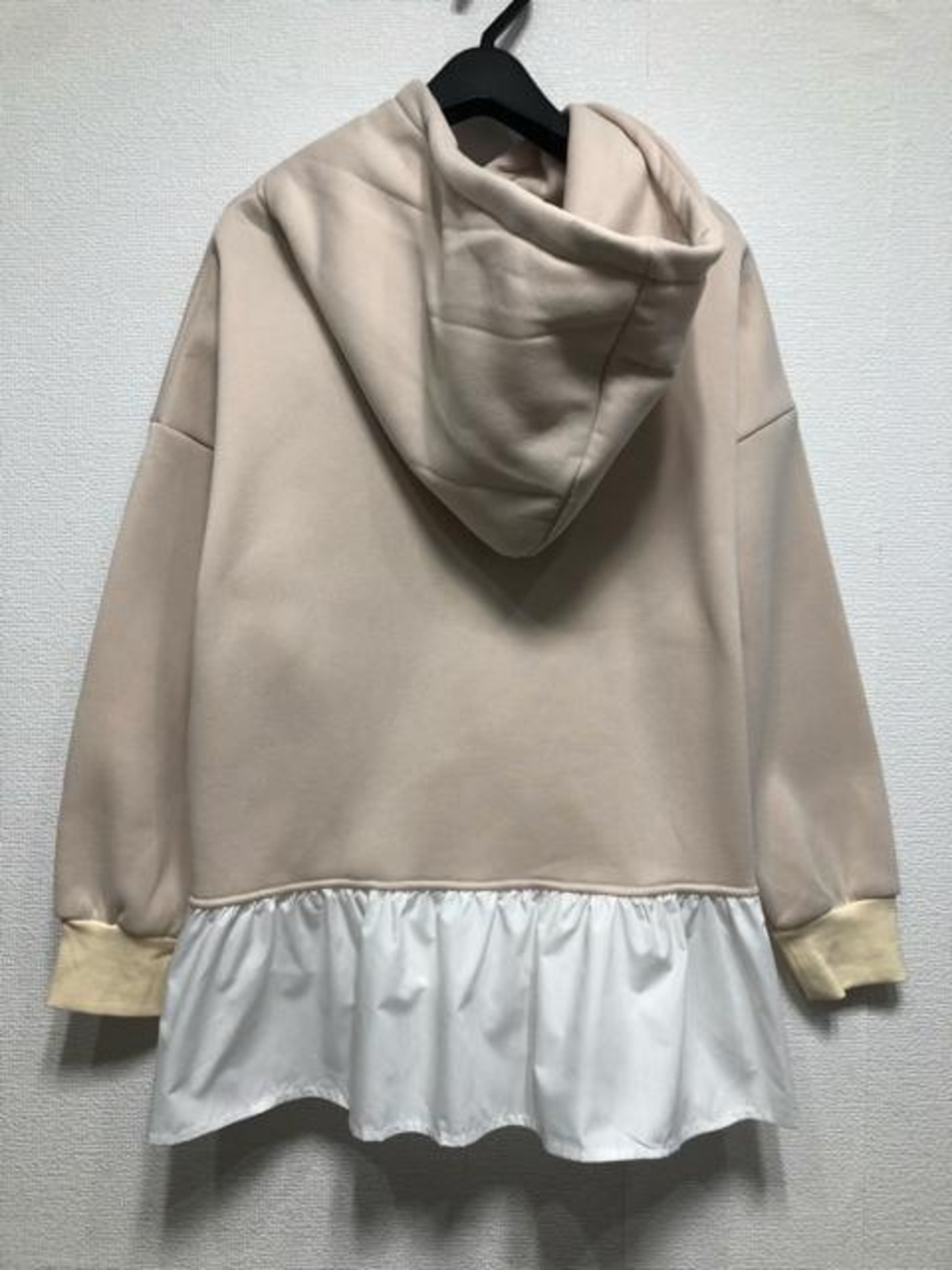 ふりふりシャツの裾がのぞくフェミニンなパーカー