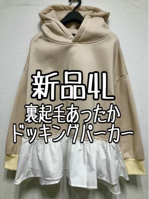 新品☆4L♪ベージュ系♪裏起毛あったかプルオーバーパーカー☆w931