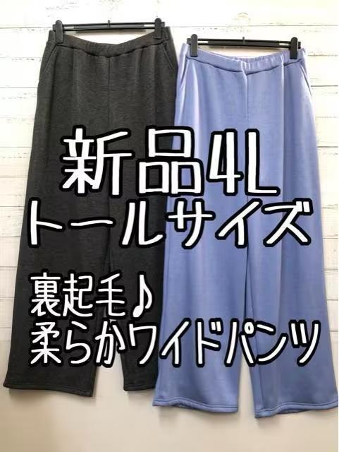 新品☆4Lトールサイズ♪裏起毛やわらか楽ちんワイドパンツ2本セット♪☆s382