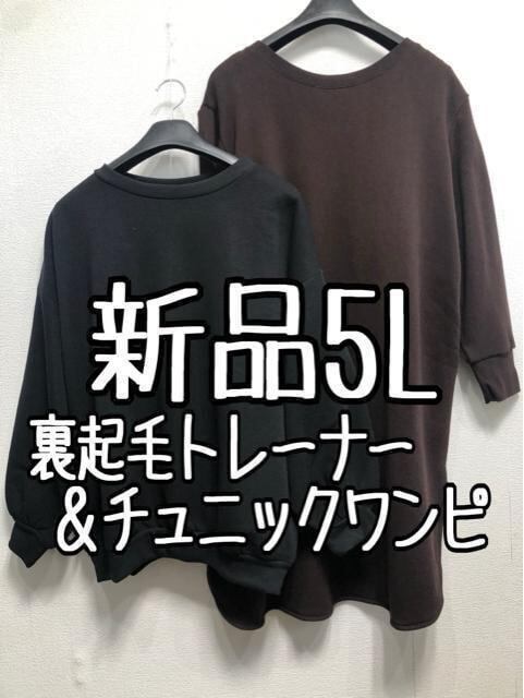 新品☆5L♪黒×茶系♪裏起毛トレーナー&チュニックワンピ☆z285