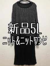 新品☆5L♪黒系♪重ね着おしゃれニットのセットアップ♪☆u753