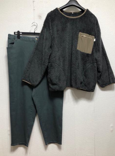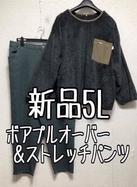 新品☆5L♪グレー系ボアプルオーバー&グリーン系ストレッチパンツ☆z238
