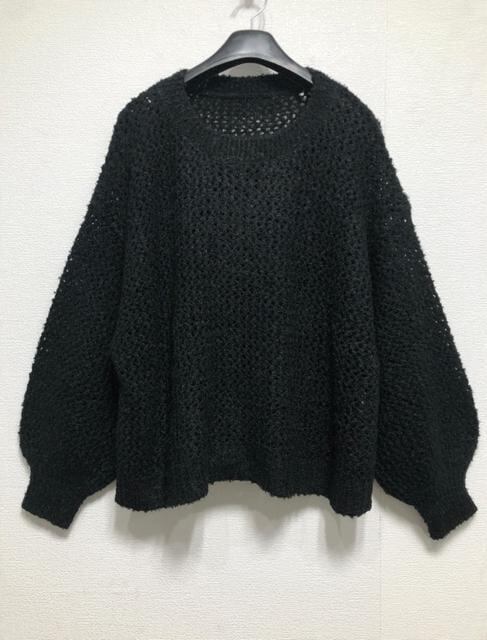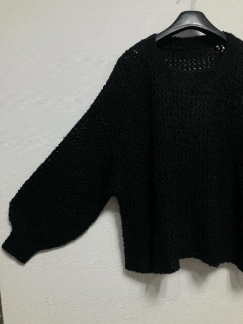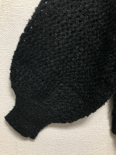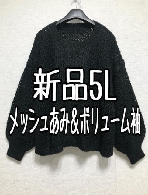 新品☆5L♪黒系♪メッシュ編みボリューム袖おしゃれニット☆z324