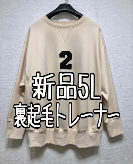 新品☆5L♪アイボリー系バックプリントおしゃれトレーナー♪No.2☆u447