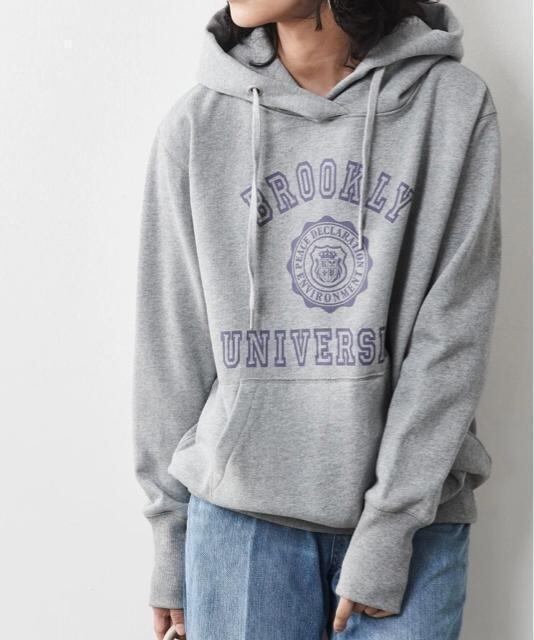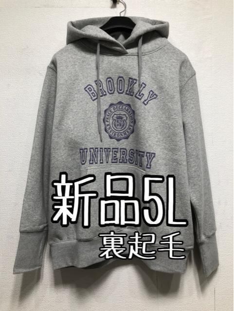 新品☆5L♪グレー系♪ロゴプリントおしゃれプルオーバーパーカー裏起毛☆z744