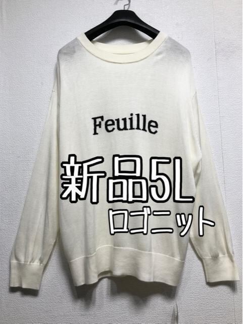 新品☆5L♪白系♪ロゴニット♪おしゃれセーター♪きれいめカジュアル☆z532