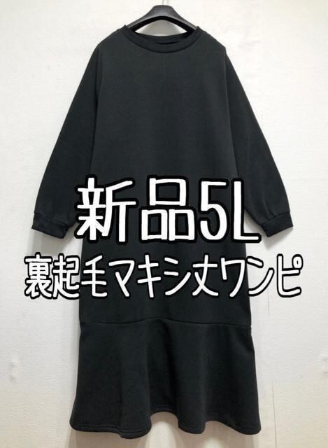 新品☆5L♪黒系♪あったか裏起毛♪切替フレアロングワンピース☆z998