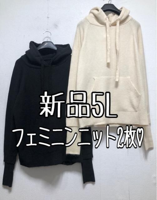 新品☆5L♪白×黒系♪やわらかニットパーカー2枚セット☆z848