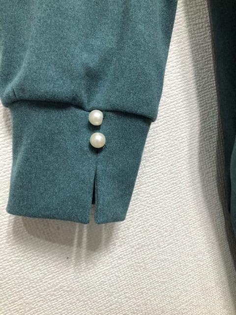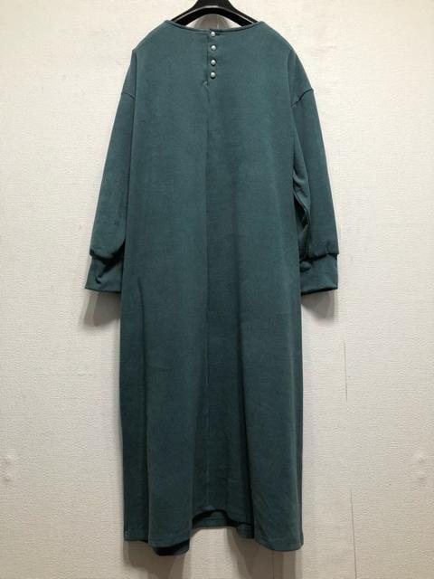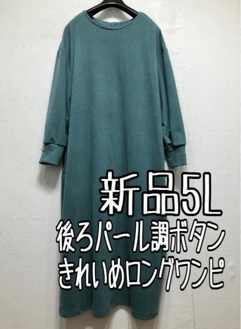 新品☆5Lグリーン系♪パール調飾りきれい裏起毛ロングワンピース☆z754