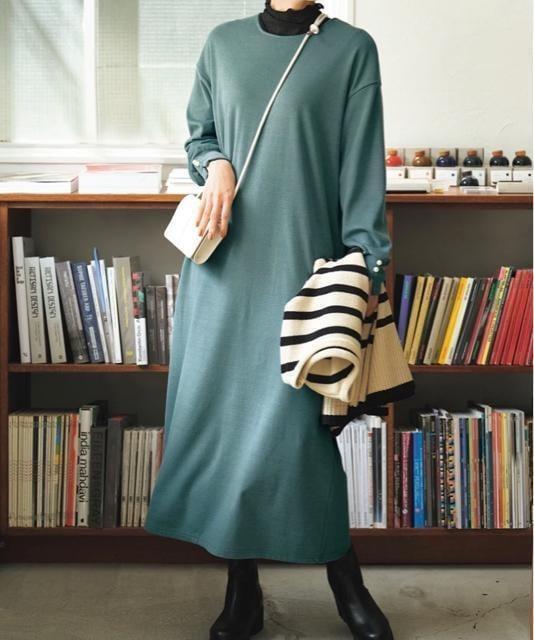 裏起毛素材のロングワンピース