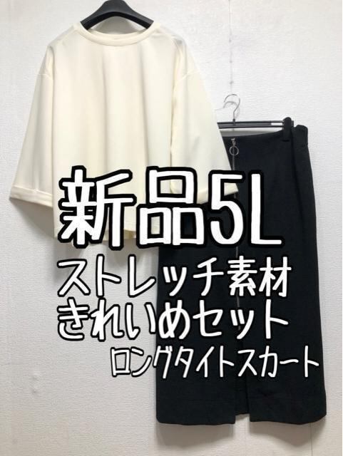 新品☆5L♪黒系ロングタイトスカート&白系きれいめトップス☆z539