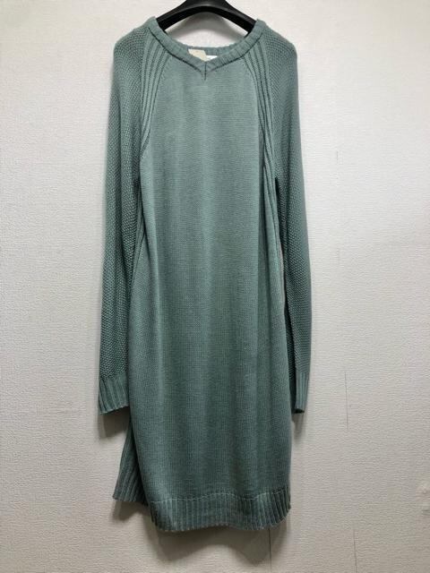 Vネックのチュニック丈ニットと