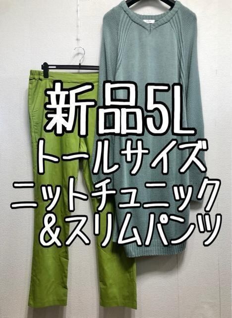 新品☆5Lトール♪Vネックニットチュニック&裏起毛あったかスリムパンツ☆z289