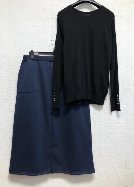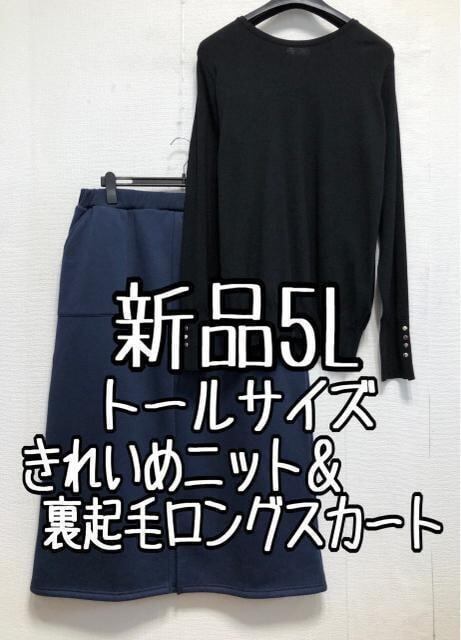 新品☆5Lトール♪黒系ニット&紺系あったか裏起毛ロング丈スカート☆r227