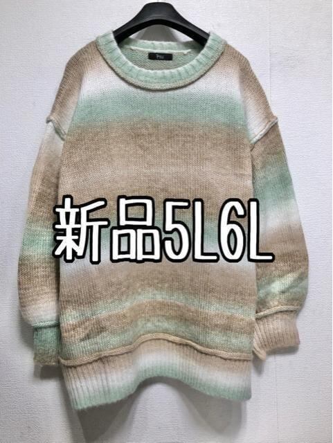 新品☆5L6L♪グリーンモカ系♪ゆったりボリューム袖ニット☆r164