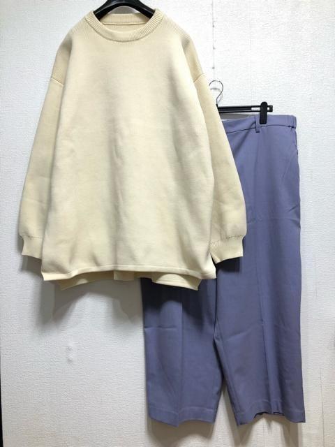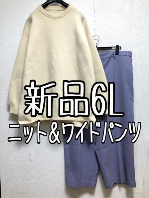 新品☆6L♪ベージュ系もっちり分厚めニット&ラベンダー系ワイドパンツ☆z199