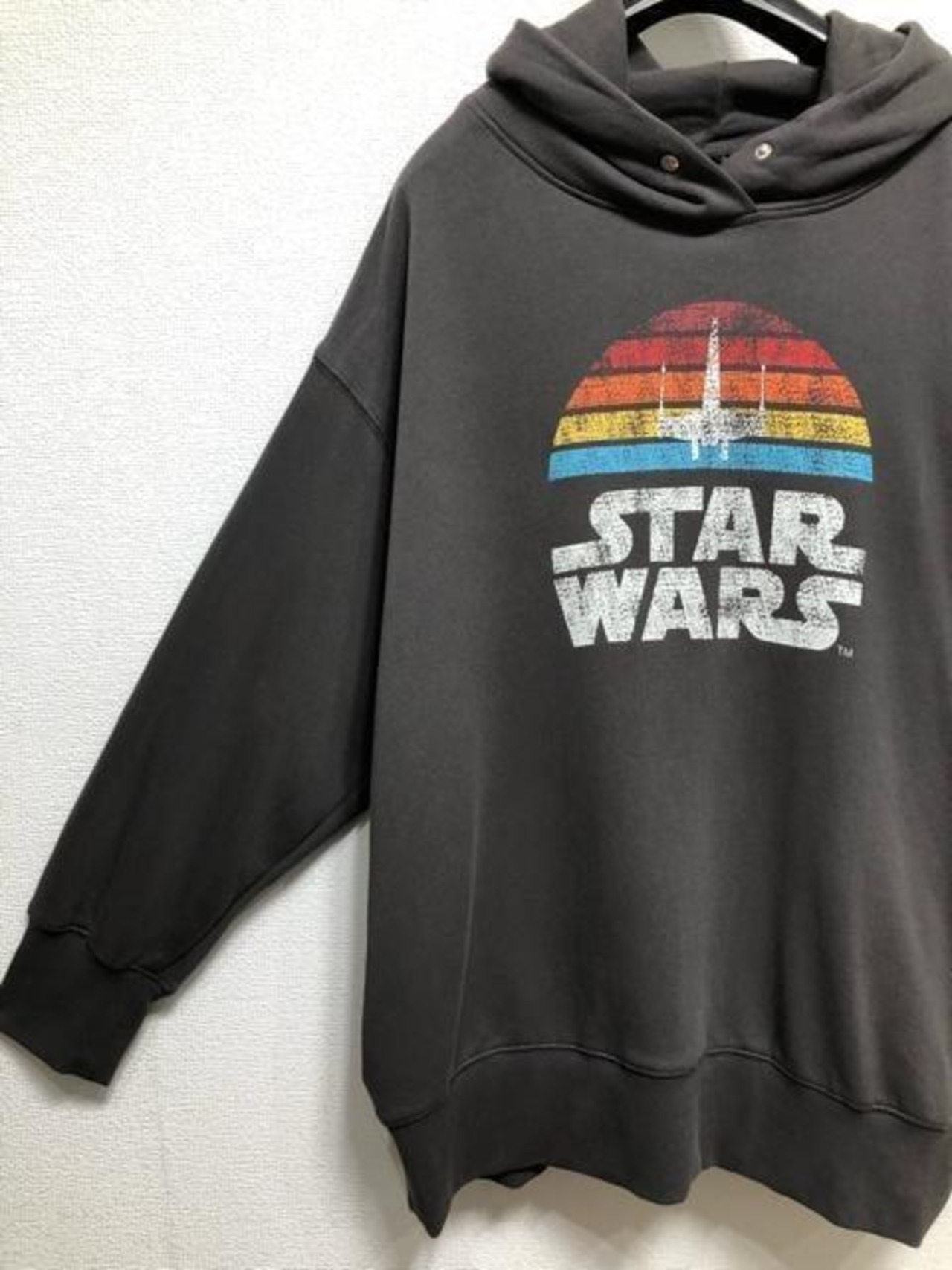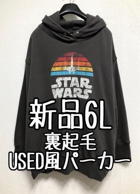 新品☆6L♪グレー系スターウォーズ裏起毛おしゃれパーカー♪USED風♪☆z186