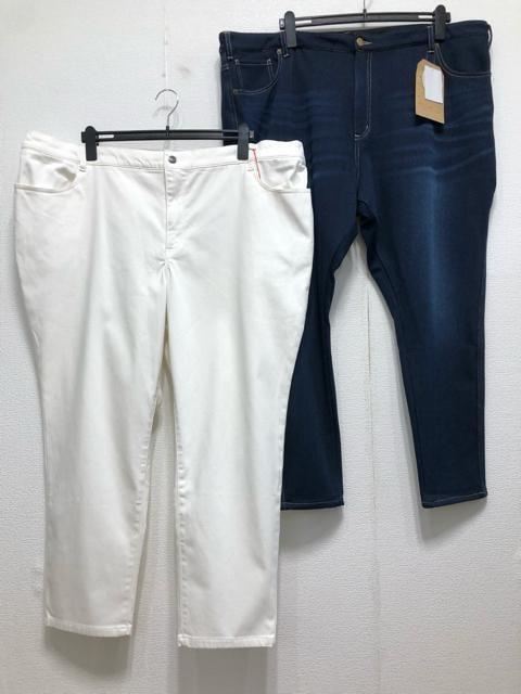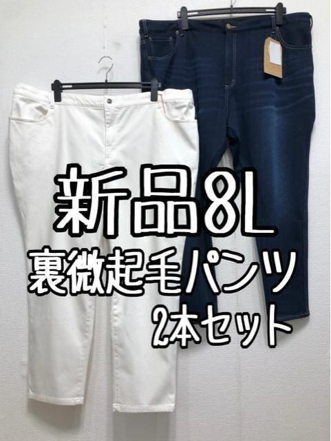 新品☆8L♪裏微起毛やわらかデニム&白パンツ♪2枚セット☆w361