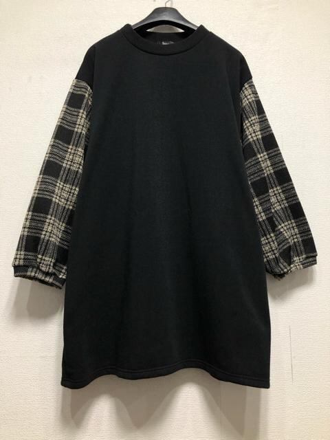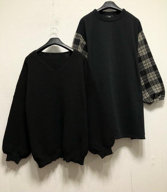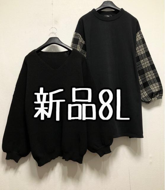 新品☆8L♪黒系♪クッションニット&切替異素材チュニック☆r174