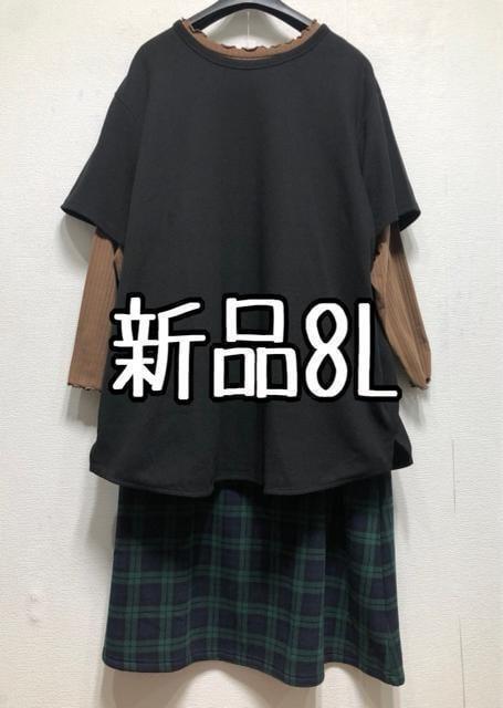 新品☆8L♪リブカットソー&チュニック&裏起毛スカート☆z880