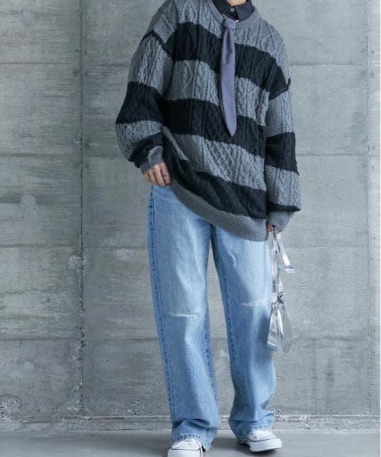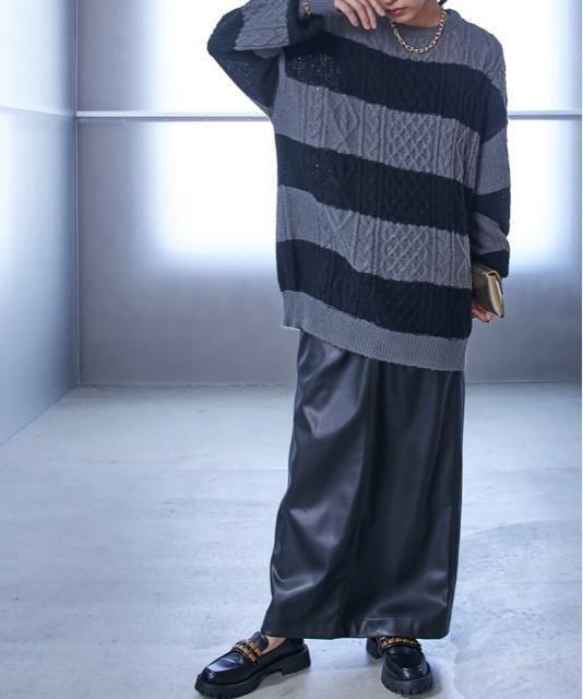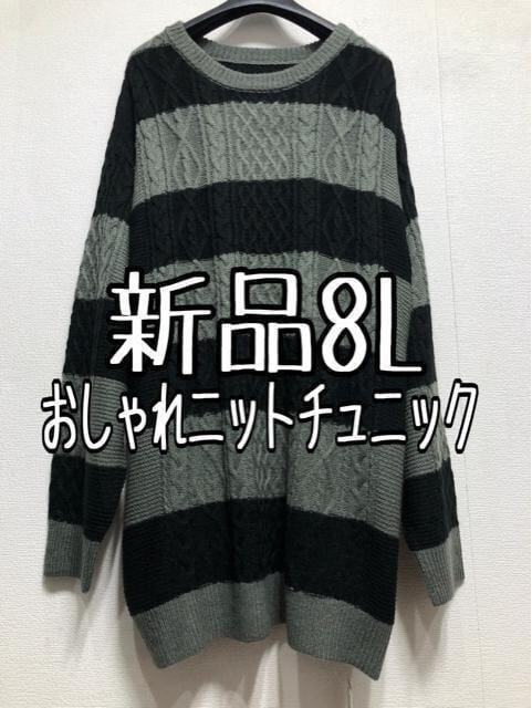 新品☆8Lグレー系♪ニットチュニック♪アラン柄おしゃれ☆z871