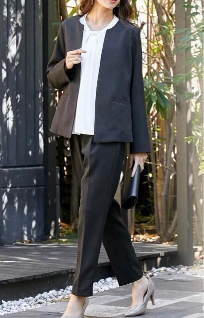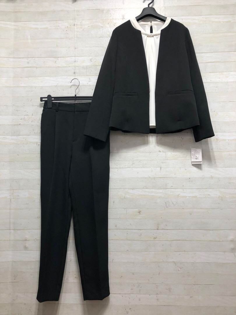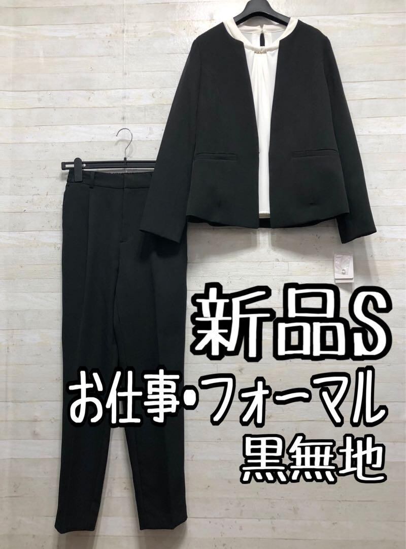 新品☆S黒系無地ストレッチパンツスーツ3点フォーマル〇D146