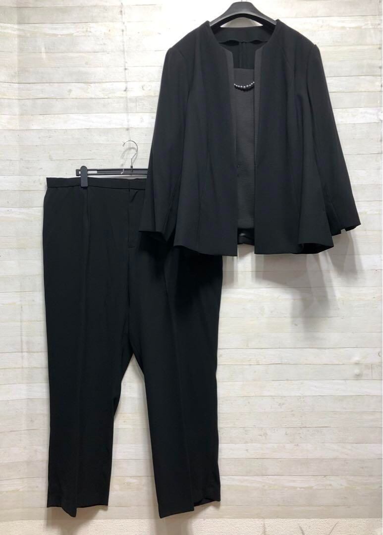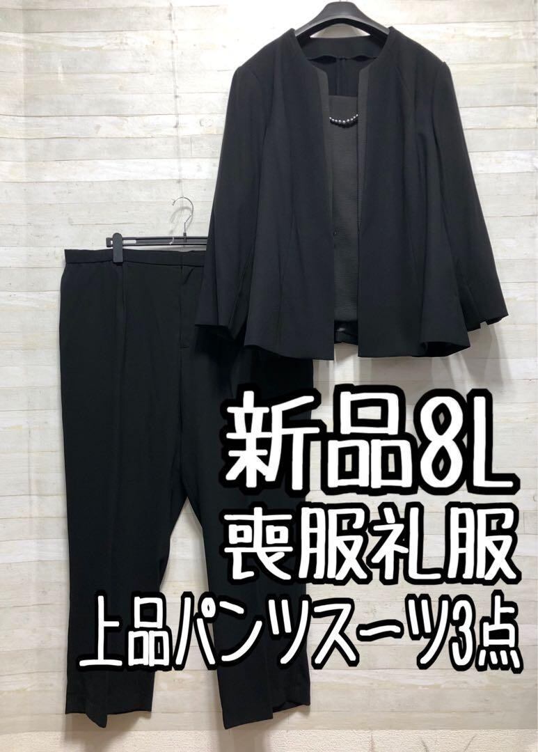 新品☆8L喪服礼服ジャガード上品スーツ3点セット黒フォーマル3万円相当〇D198
