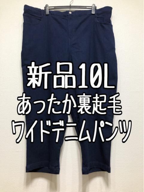 新品☆10L♪裏起毛ワイドデニムパンツ♪ストレッチ♪あったか♪☆u542