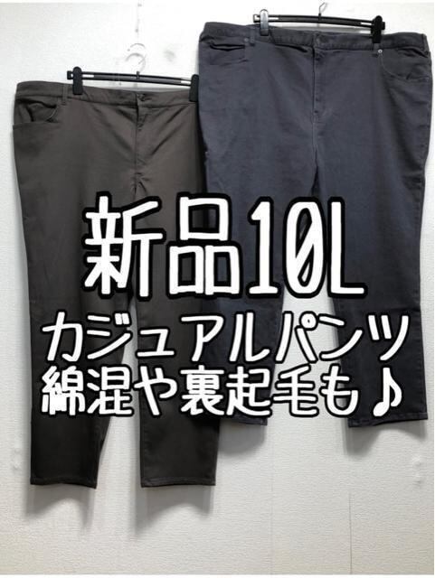 新品☆10L♪グレー×茶系♪綿混カジュアルパンツ2本セット♪裏起毛も☆z256