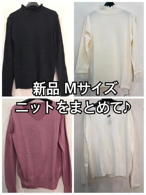 新品☆M♪黒×白×ピンク系♪可愛い!デザイン色々ニットを4枚まとめて☆f363