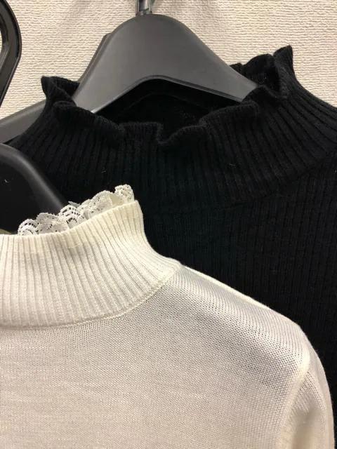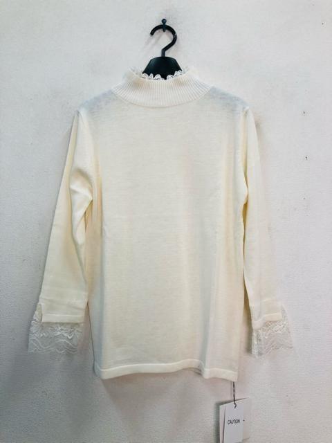 ネック&袖口のレースがかわいいニット
