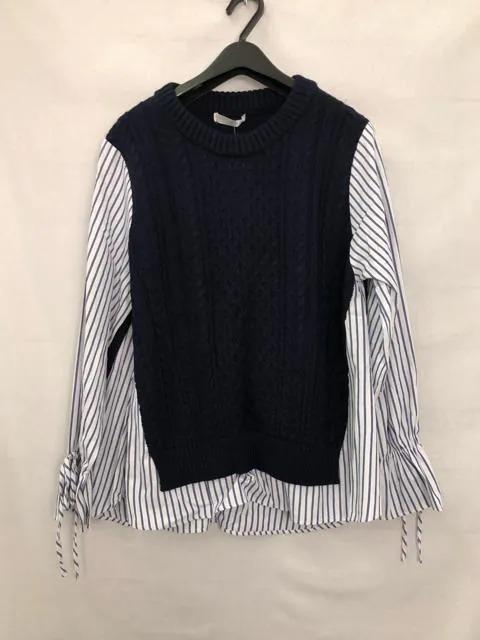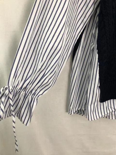 ニット&ストライプシャツの重ね着のような