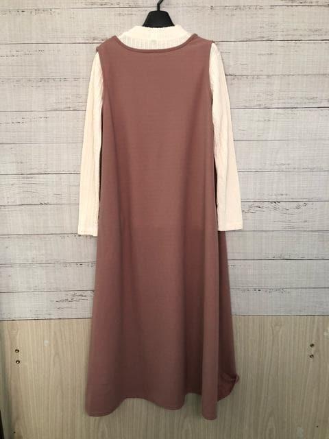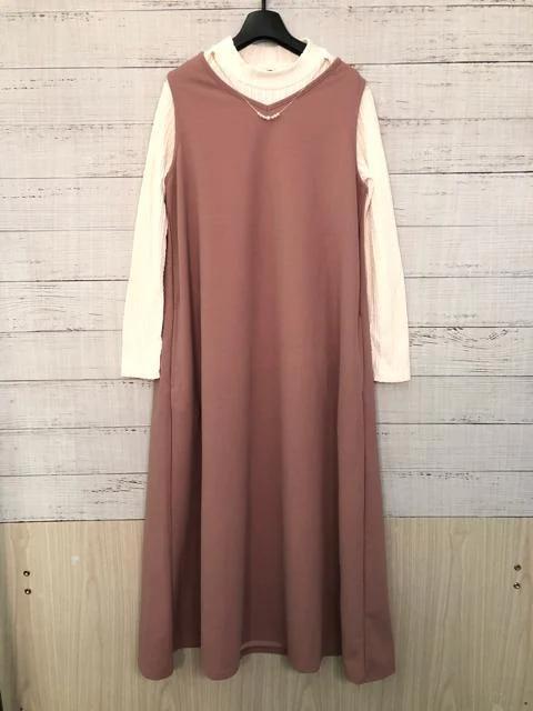 新品☆M♪スモークピンク系マキシワンピースとアクセサリー付きカットソー☆y637