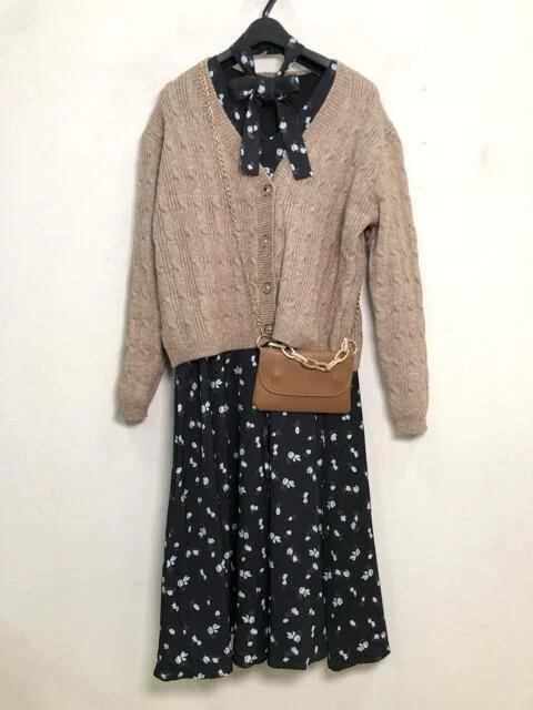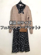 新品☆Mサイズ♪可愛いフェミニンコーデセット花柄ワンピ・カーデ・ポーチ☆y102