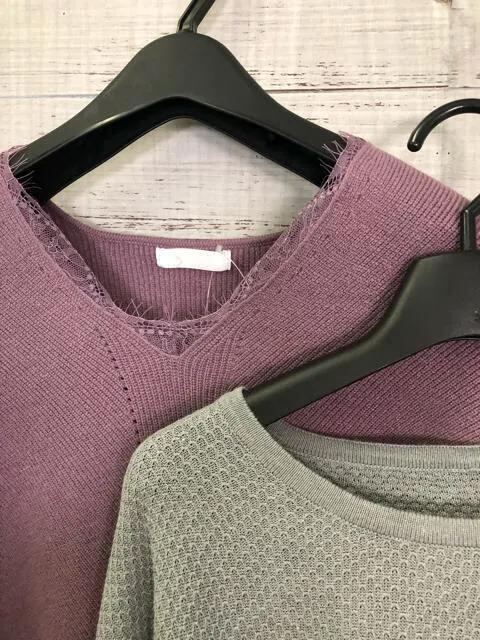 新品☆M♪レース使いが綺麗なニットを2枚セットで♪薄手素材も☆y589