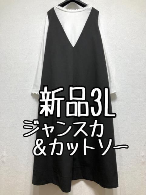 新品☆3L♪黒系マキシ丈ジャンスカ&白系カットソーのセット♪☆u693