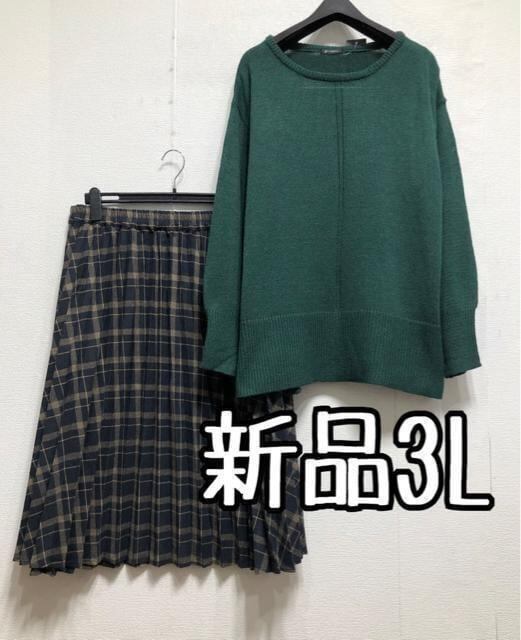 新品☆3L♪ニット&プリーツスカート♪おしゃれセット☆r183