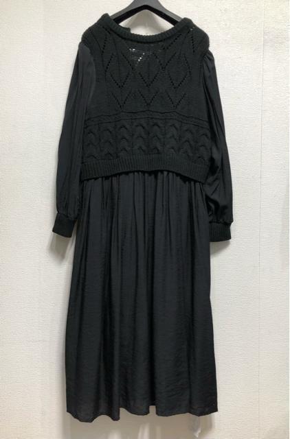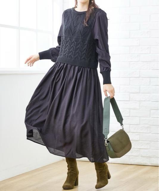 新品☆3L黒系♪ニットベスト重ね着風ロングワンピース☆r157