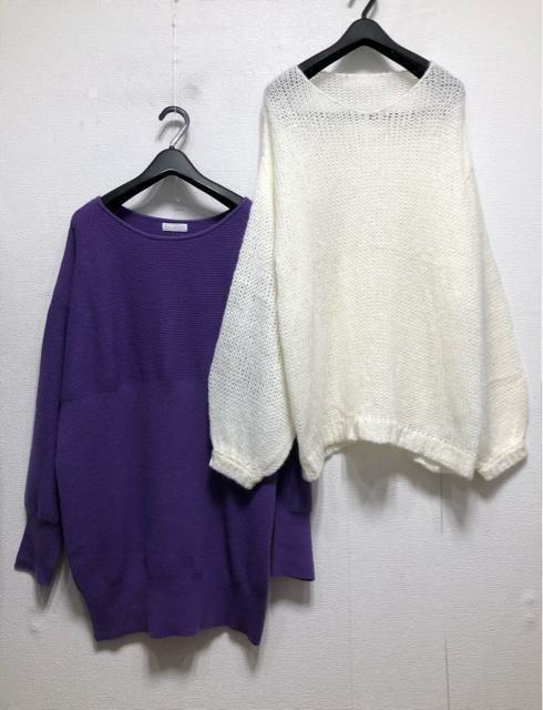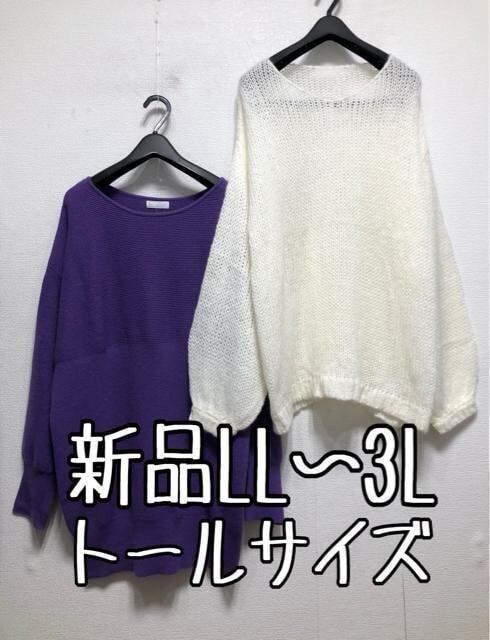 新品☆LL~3Lトール♪パープル&白系ボリューム袖フェミニンニット2枚☆z983