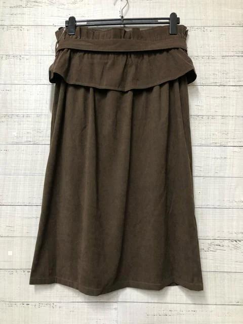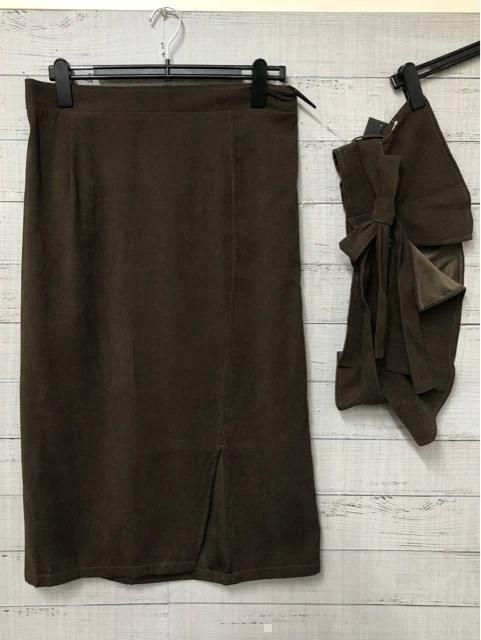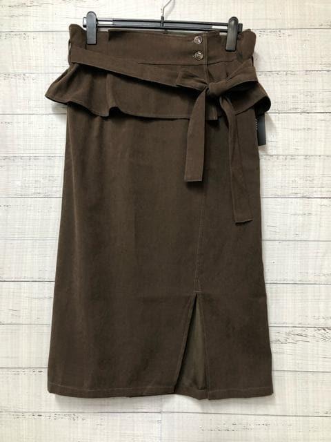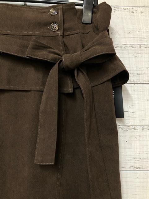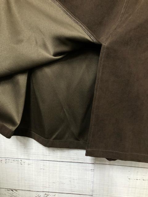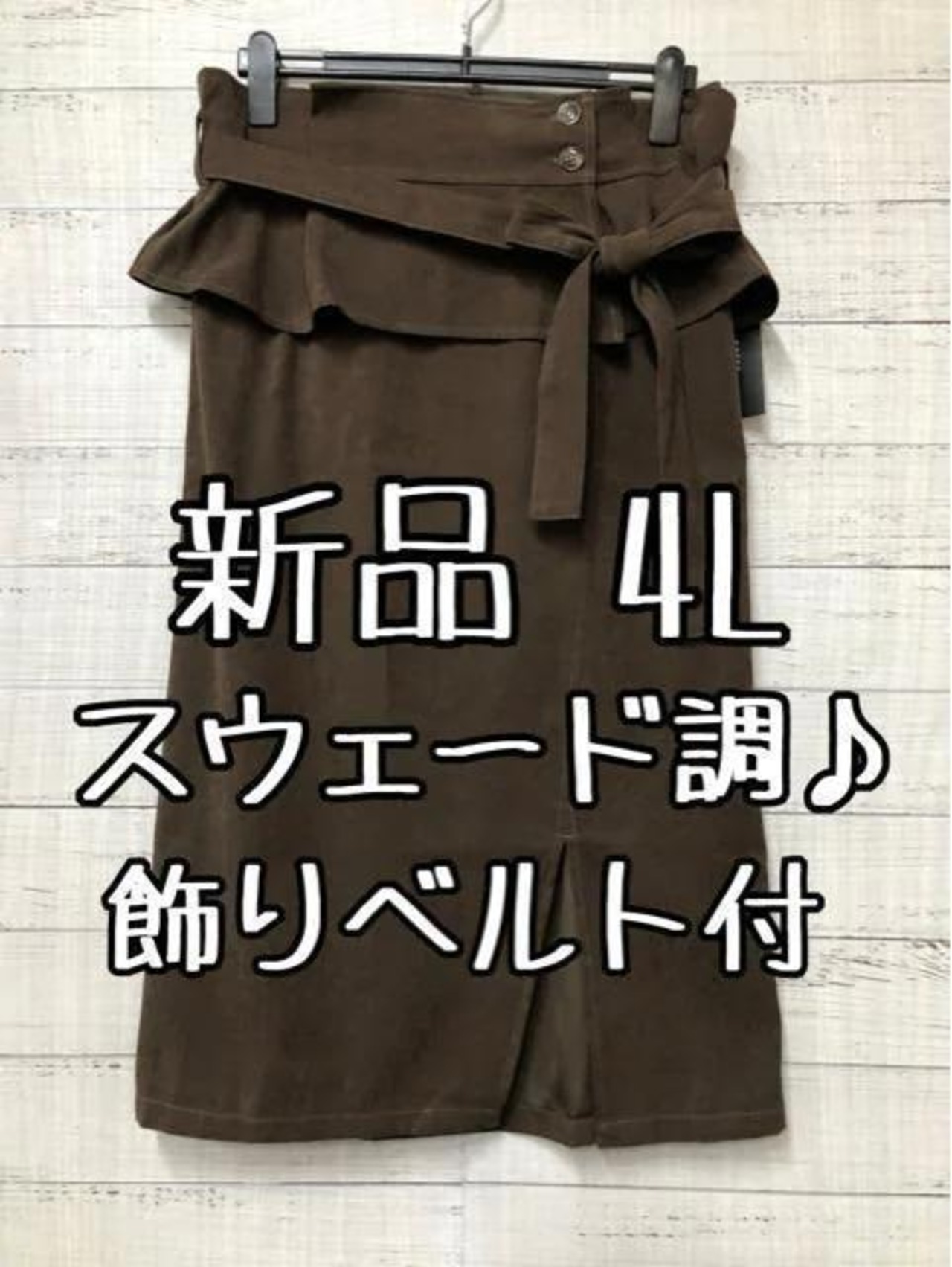 新品☆4L♪ブラウン茶系♪スウェード調スリット入りスカート♪飾りベルト☆e867