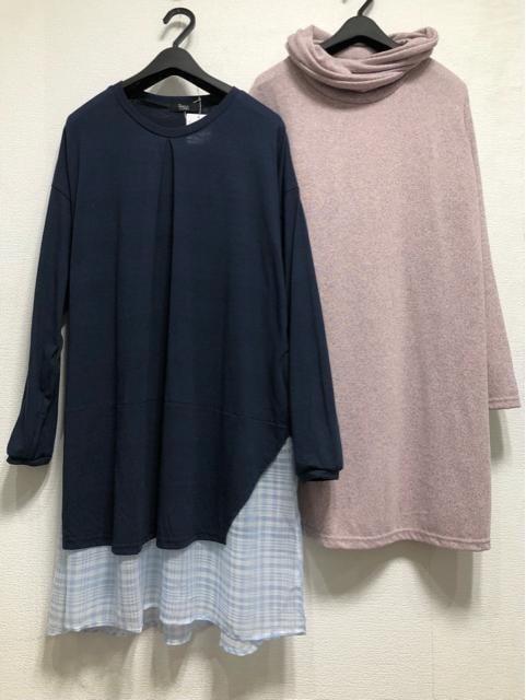 新品☆4L♪チュニック2枚セット♪ニット&重ね着風☆z968