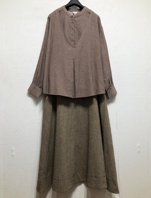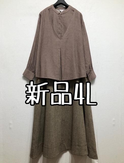 新品☆4L♪重ね着風コットンシャツ&ツイード調ロングフレアスカート☆r176