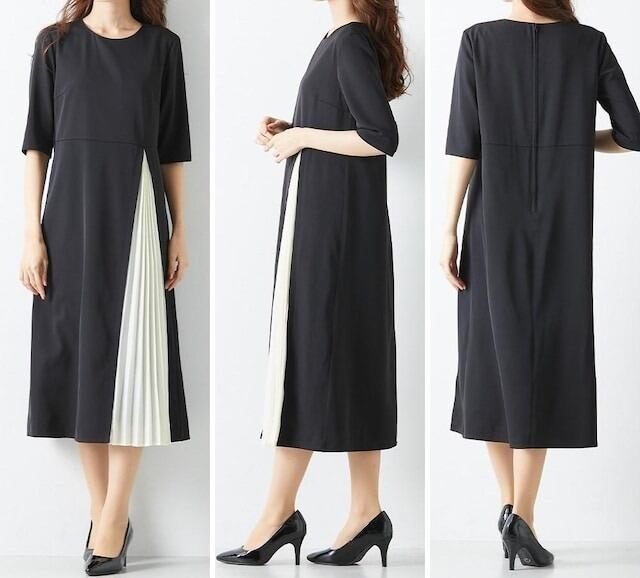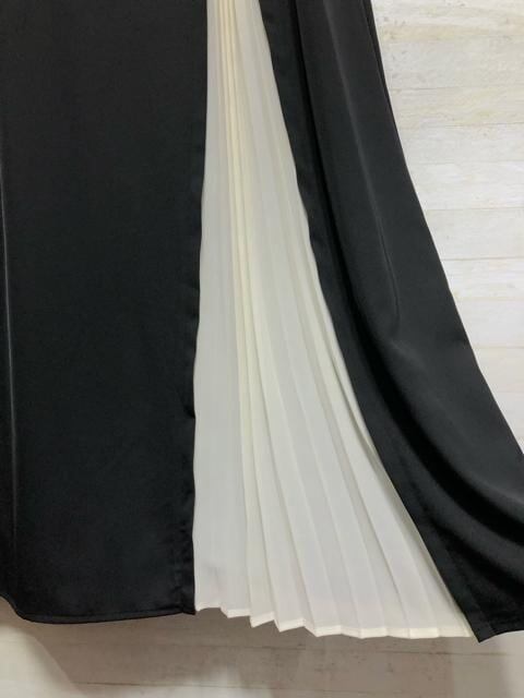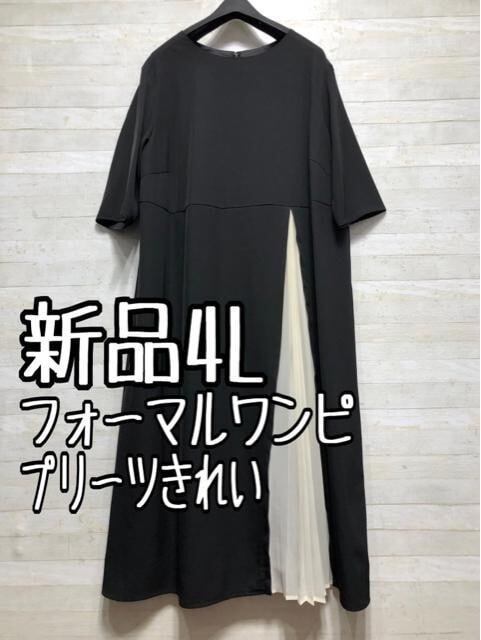 新品☆4L黒系プリーツ切替おしゃれワンピースきれいめ・フォーマル♪少しわけあり〇B971