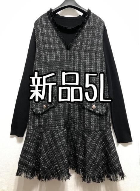 新品☆5Lキラキラツイードジャケット&リブニットソー☆z845