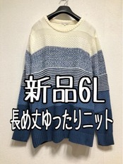 新品☆6L♪ブルーグラデーション♪長め丈ゆったりニット☆z182