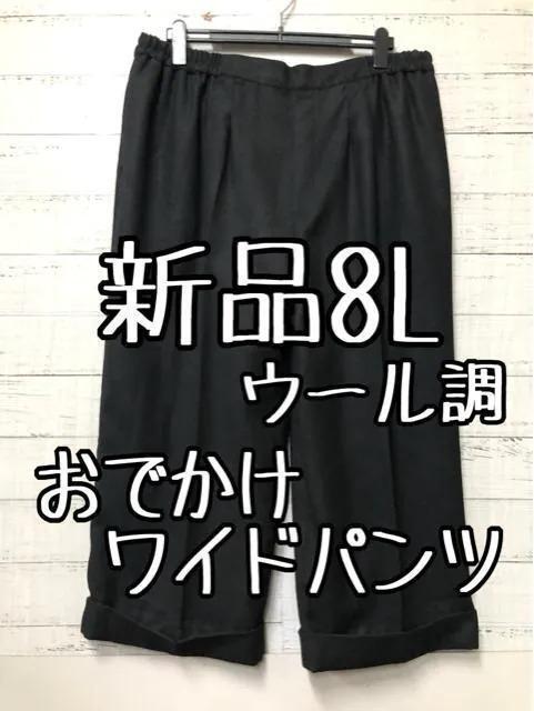 新品☆8L♪黒系♪ウール調きれいめワイドパンツ♪お仕事・フォーマルも☆e998