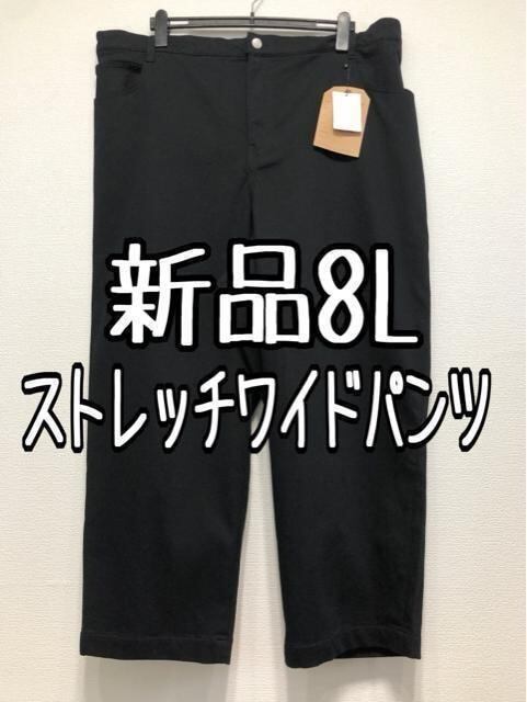 新品☆8L♪黒系♪裏起毛ストレッチ♪カジュアルワイドパンツ☆w432